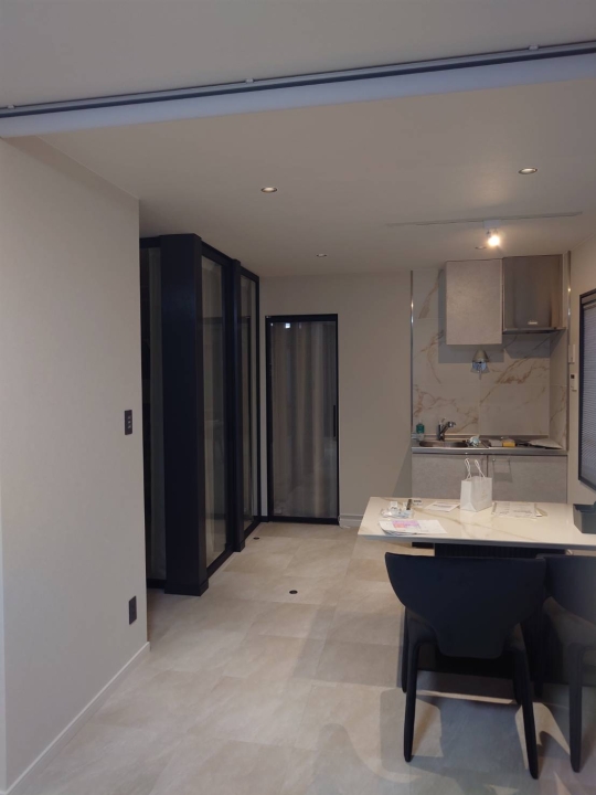 住居使用の建屋を内装リフォーム、事務所仕様に変更。水回りはほぼ既存残し仕上げと間仕切りを変更しております。